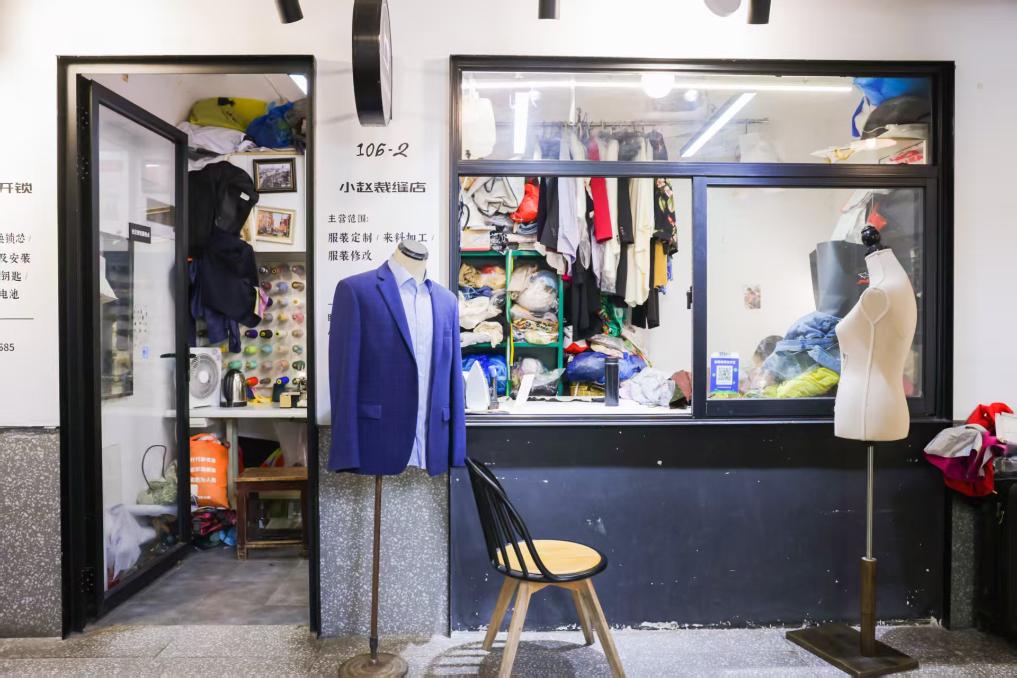 上海江苏路社区所辖愚园路1088弄里打造的“诗和远方”的公共阛阓里的裁缝店。新华社记者郑钧天 摄